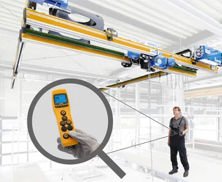 Especially during crane operation using a radio remote control, the indication of the travel direction is very useful so that the correct button can always be selected for the travel direction. Therefore, ABUS includes the operating direction signs in the standard scope of delivery for radio remote controls.