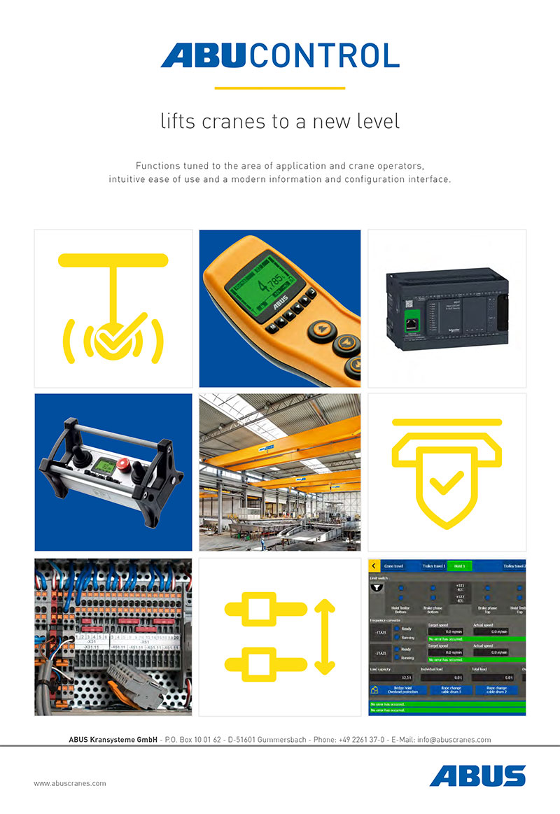 ABUS cross-type limit switch for electric limitation cause the automatic reduction or switching off of the travel movement of cranes and trolleys.